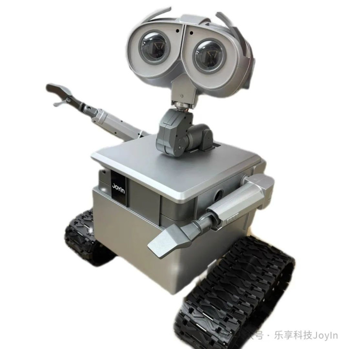 乐享科技推出的瓦力履带机器人,具备自动移动能力,支持遥控、动作识别和语音交互三种模式,主打家庭室内外陪伴场景,同时配有经典电影原声。